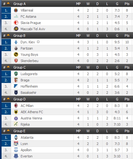 Klasemen Sementara Liga Europa 2019 2020 Grup A Hingga F Indosport